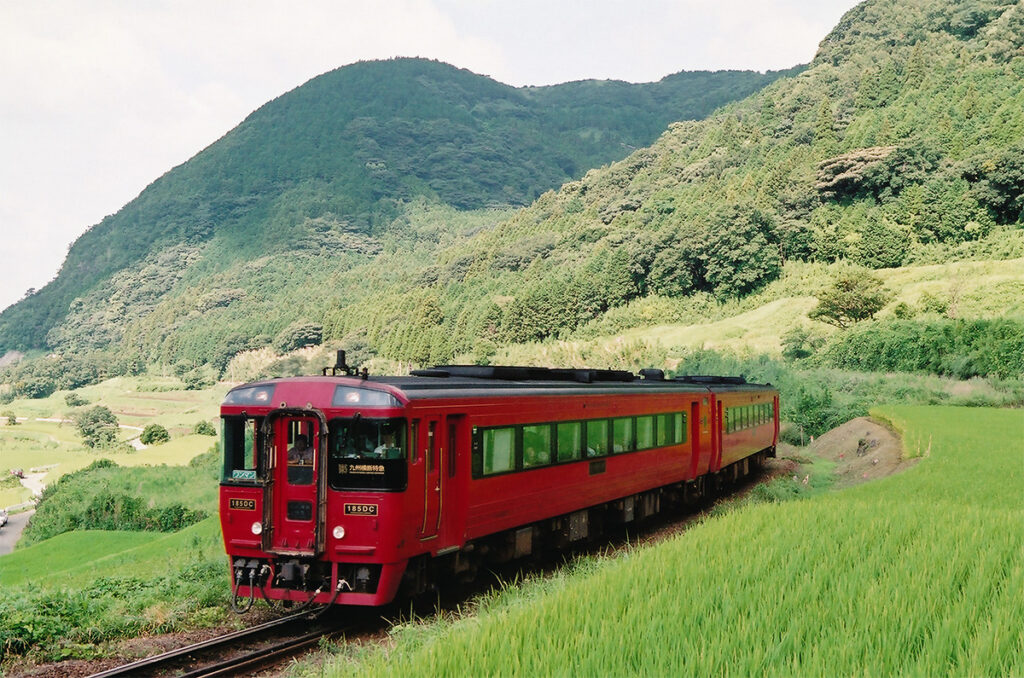その後、筆者がキハ185系を見たのは2005年の九州だった。軽快だった印象はガラリと変わり、こんどはJR九州のコーポレートカラーである真っ赤な装いになっていた。